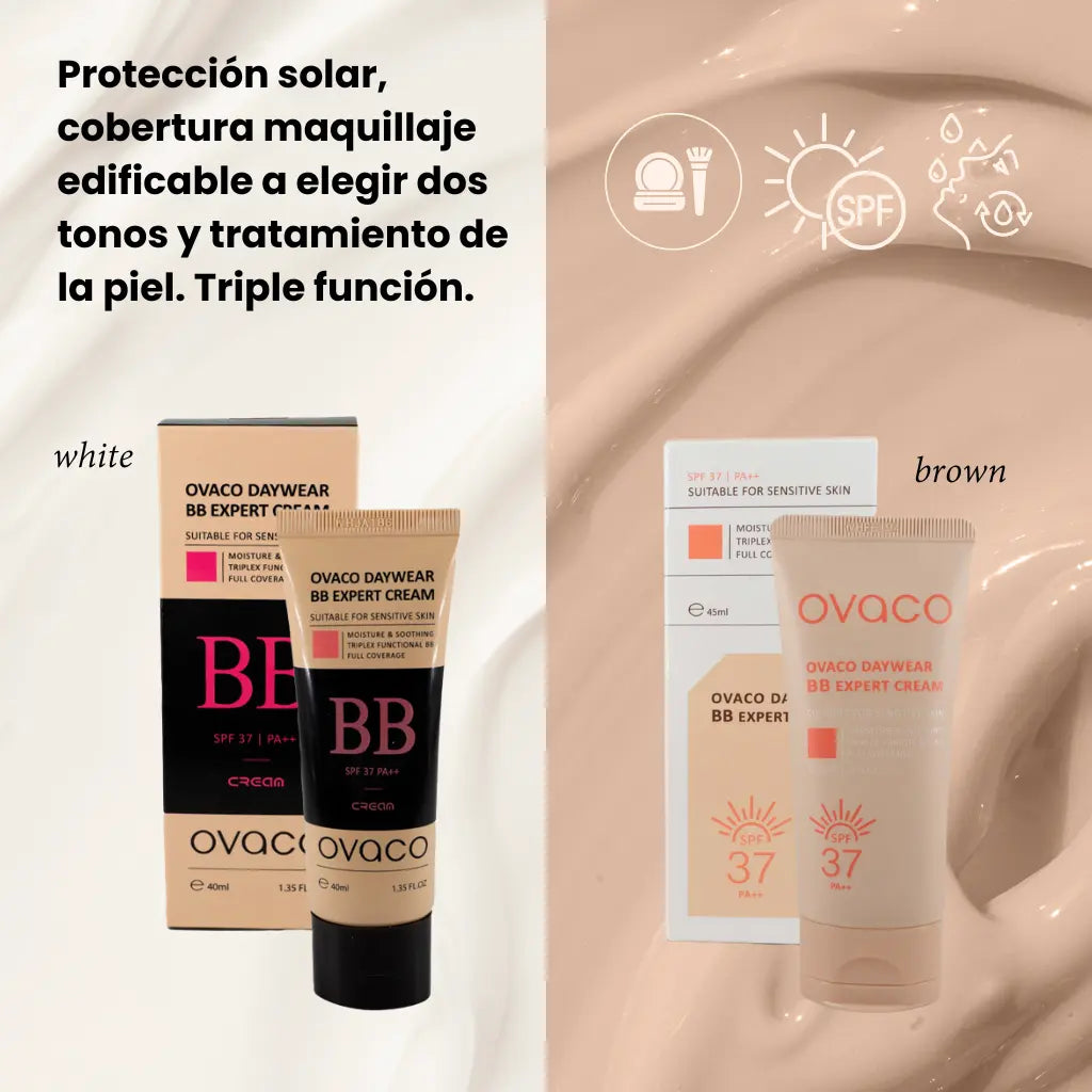 Con BB Cream de Ovaco tú eliges el matiz que quieres darle a tu piel mientras te protege de los dañinos rayos UV y, además, con su fórmula patentada se convierte en una gran aliada en la lucha contra el envejecimiento.